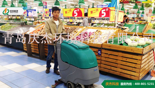 超市等購物場所人員密集,地面上的灰塵和垃圾很多,清潔工人需要來回經常打掃很麻煩,而且清掃時還會影響顧客的心情,超市或者購物廣場等場所可以使用慶杰QJ-X500B手推式洗地機進行清掃。